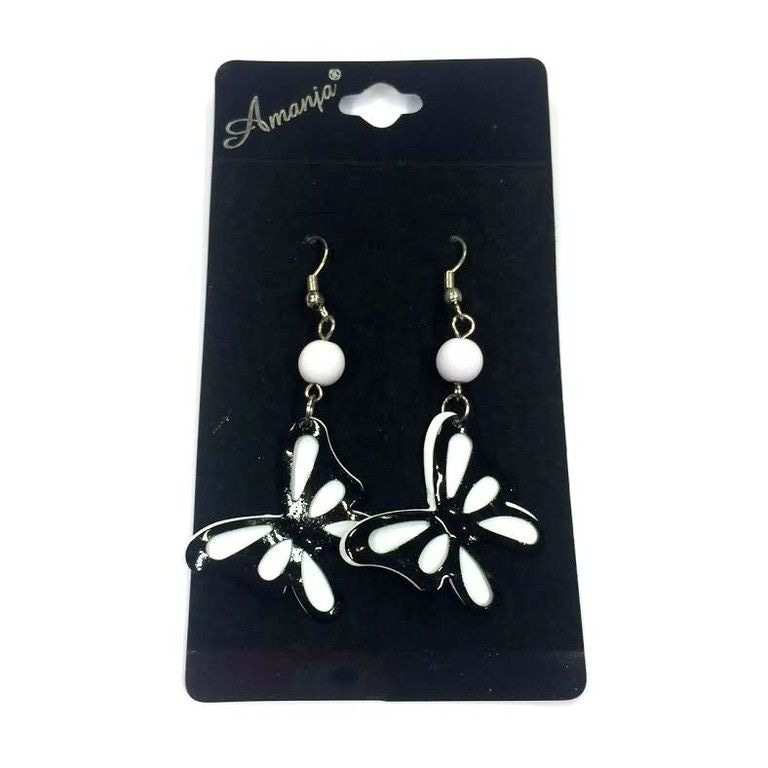 S_89869 - EARRINGS BLACK / WHITE BUTTERFLY (12pcs)