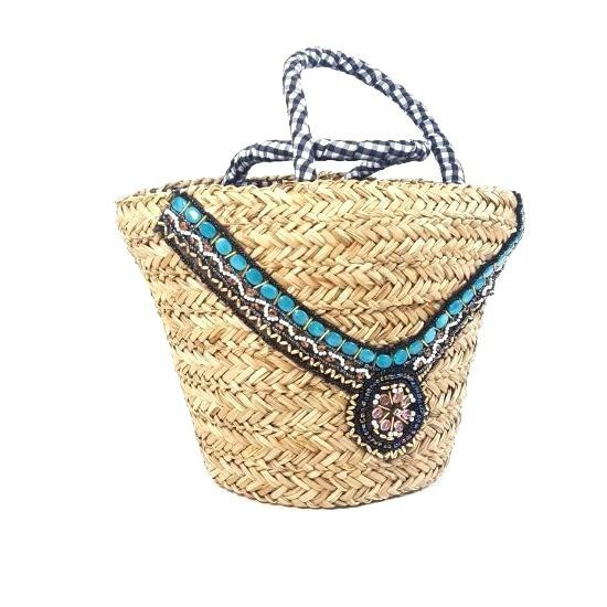 S_811444B - AB COLLEZIONI - BRAIDED seagrass BAG WITH BEAUTIFUL APPLICATION - BLACK (1st)