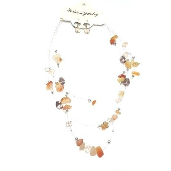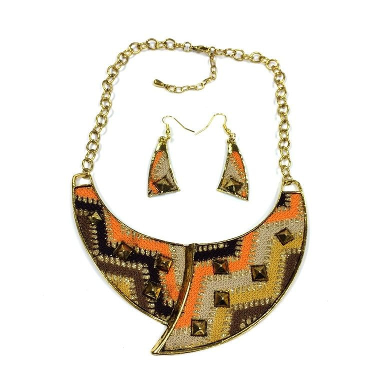 S_600566 - NECKLACE AND EARRINGS WITH STUDS BROWN / YELLOW / GREY / ORANGE (1st)