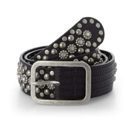 S_95286- - Art.nr: 95286 - GREY LEATHER BELT WITH STUDS 105CM (1st)