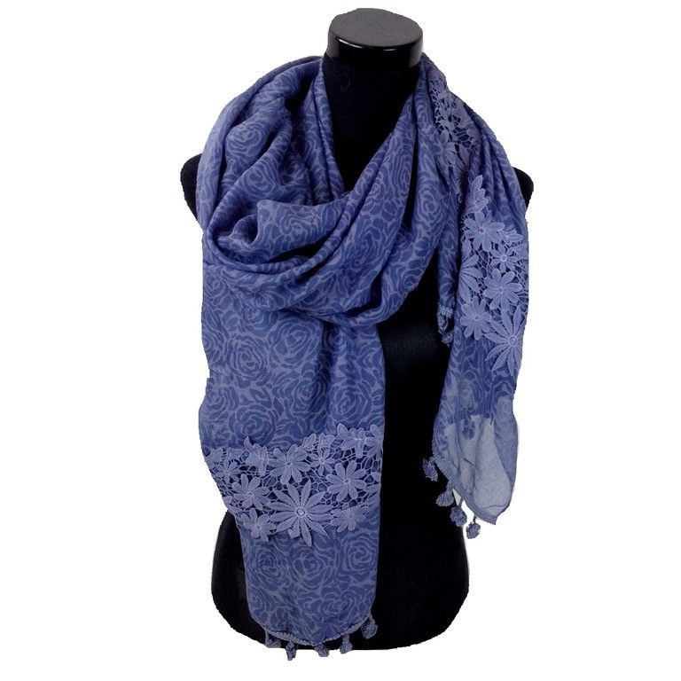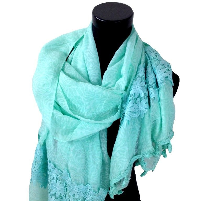 S_900011C - SCARF WITH ROSES AND FLOWERS PRINT LACE MINT BLUE (1st)