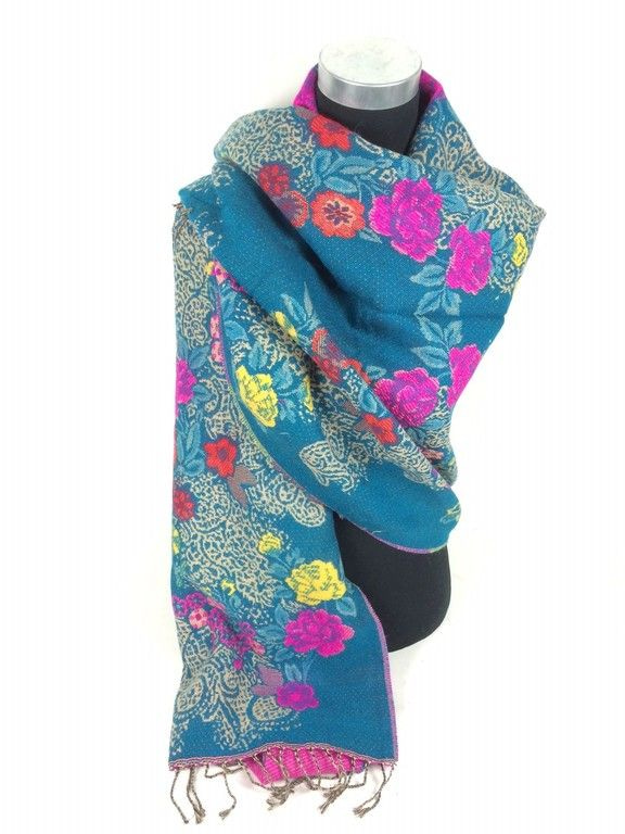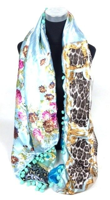 S_2104007C - LUXURY SCARF 2 SIDED MINT / BLUE / FLOWER (1st)