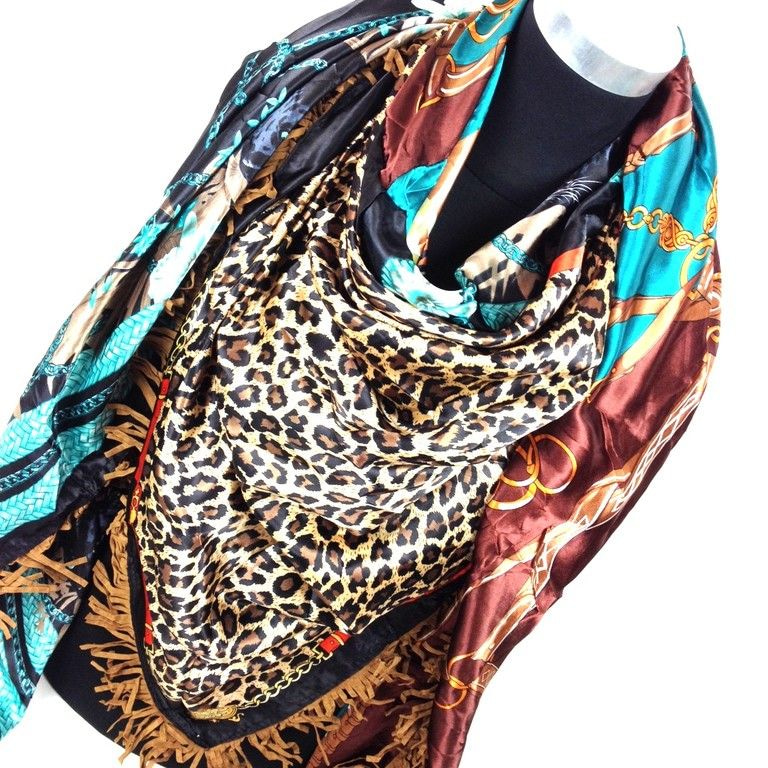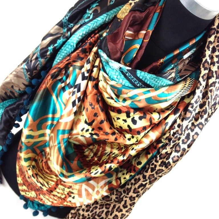 S_2149007V - LUXE TRIANGLE SCARF 2-SIDED PETROL / TIGER / BROWN (1st)