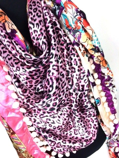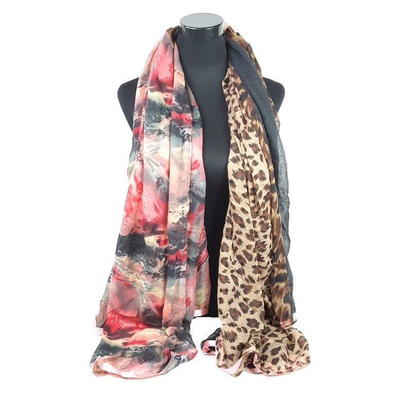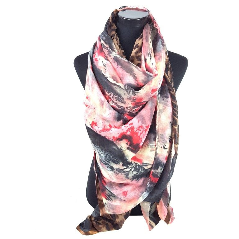 S_2104007D - LUXURY SCARF 2-SIDED PINK / LILA / TIGER (1st)