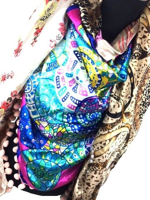 S_2149007K - LUXURY TRIANGLE SCARF 2 SIDED PINK / BLUE / TIGER (1st)