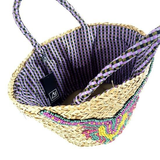 S_811445B - AB COLLEZIONI - BRAIDED seagrass BAG WITH BEAUTIFUL APPLICATION - PURPLE (1st)