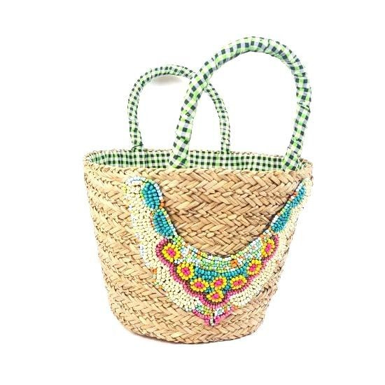 S_811446B - AB COLLEZIONI - BRAIDED seagrass BAG WITH BEAUTIFUL APPLICATION - GREEN (1st)