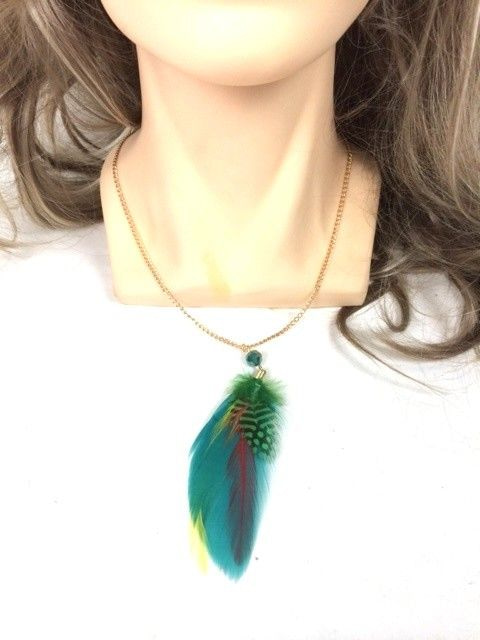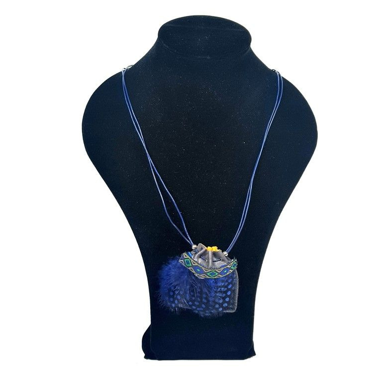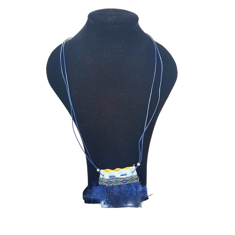 S_619117A - NECKLACE WITH LEATHER POUCH AND FEATHERS BLUE (1st)