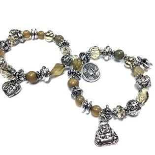 S_600620L - BRACELET SILVER LOOK / COLORED WITH HAND AND FISH (12st)