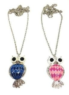 86632 - OWL NECKLACE BLUE / PINK (3pc)