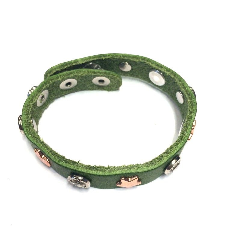 S_600484 - LEATHER BRACELET WITH RHINESTONE STUDS AND STARS GREEN (1st)