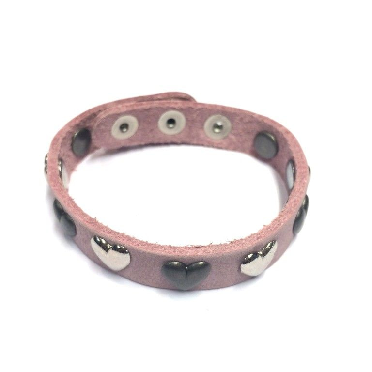 S_600487 - LEATHER BRACELET WITH STUDS MATT / GLOSS HEARTS LILA (1st)