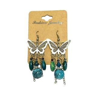 S_79501G - EARRINGS BLUE / GREEN BUTTERFLY (6pc)