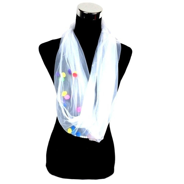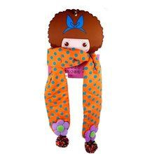 S_812243AC - CHILDREN'S SCARF DOTS ORANGE MINT BLUE WITH GREEN / PURPLE FLOWER (1st)