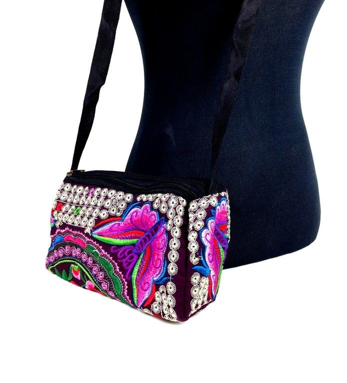 S_812013J - HAND / SHOULDER BAG BUTTERFLY / FLOWER EGGPLANT WITH CREAM (1st)