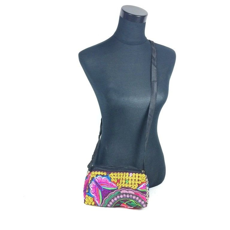S_812013F - HAND / SHOULDER BAG BUTTERFLY / ORANGE FLOWER WITH GREEN / BLUE (1st)