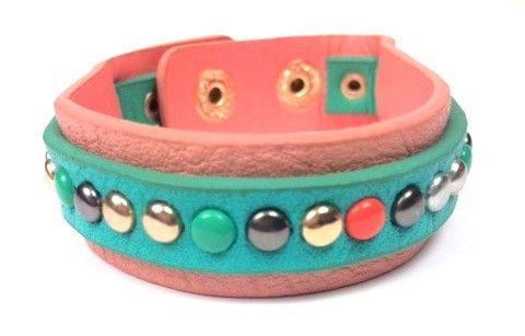 S_8765304 - IBIZA LOOK BRACELET SALMON / GREEN STUDS (1st)