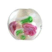 S_39170 - CLEAR GLASS BEADS / PINK FLOWER 10MM. (14st.)