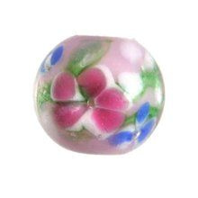S_39168 - GREEN GLASS BEADS / PINK FLOWER 10MM. (14st.)