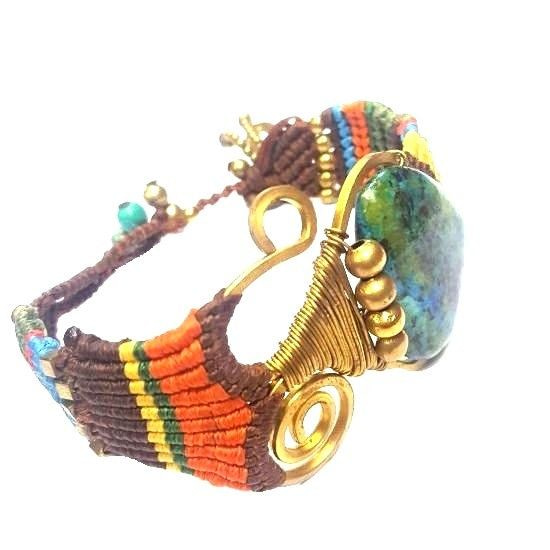 S_600200C - IBIZA LUXURY HANDMADE BRACELET ORIGINALS GREEN STONE BLUE (1st)