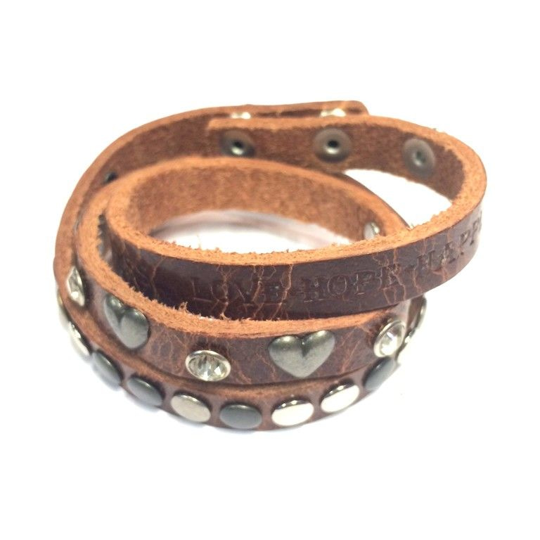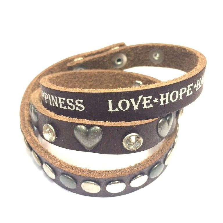 S_600488D - LEATHER BRACELET WITH STUDS / STRASS 3 DOUBLE DARK BROWN (1st)