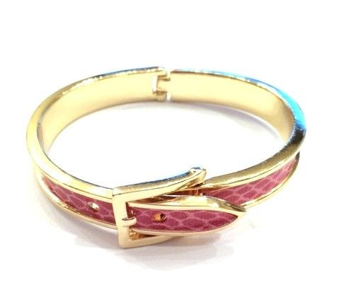 S_600063G - LUXURY GOLD-TONE BRACELET WITH PINK SNAKE PRINT (1st)