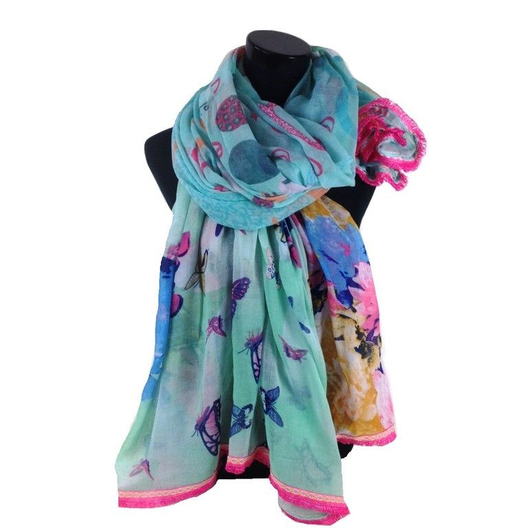 S_2451007 - BEAUTIFUL BUTTERFLIES SCARF MINT GREEN / BLUE - FUCHSIA (1st)