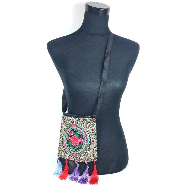 S_812013I - HAND / SHOULDER FLOWER BLACK / MULTI COLOR with tassels (1st)