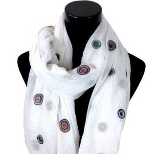 S_900003B - BEAUTIFUL SCARF WITH WOVEN ROUND WHITE (1st)