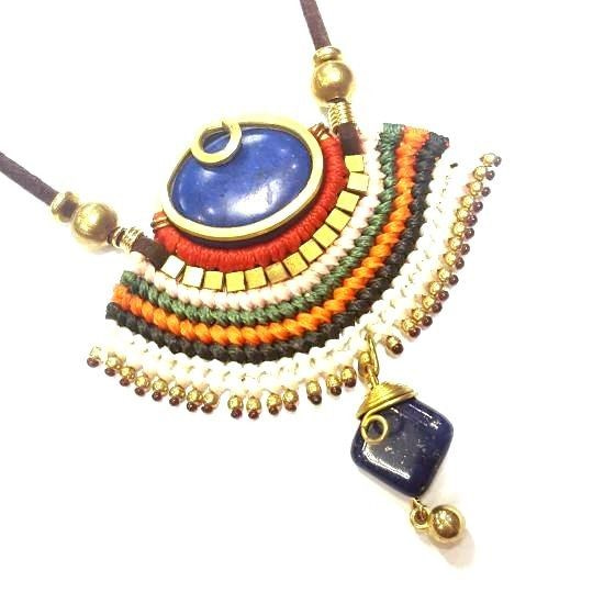 S_600208A - HANDMADE NECKLACE WITH BLUE STONE IBIZA ORIGINALS RED / BROWN (1st)