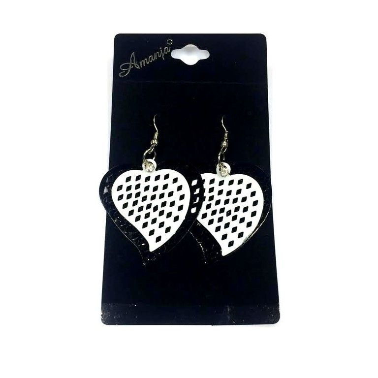 S_89879 - EARRINGS BLACK / WHITE HART (12pcs)