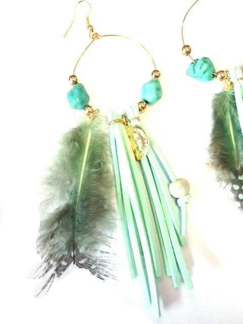 S_5799204 - IBIZA LOOK EARRINGS WITH FEATHERS MINT (1st)