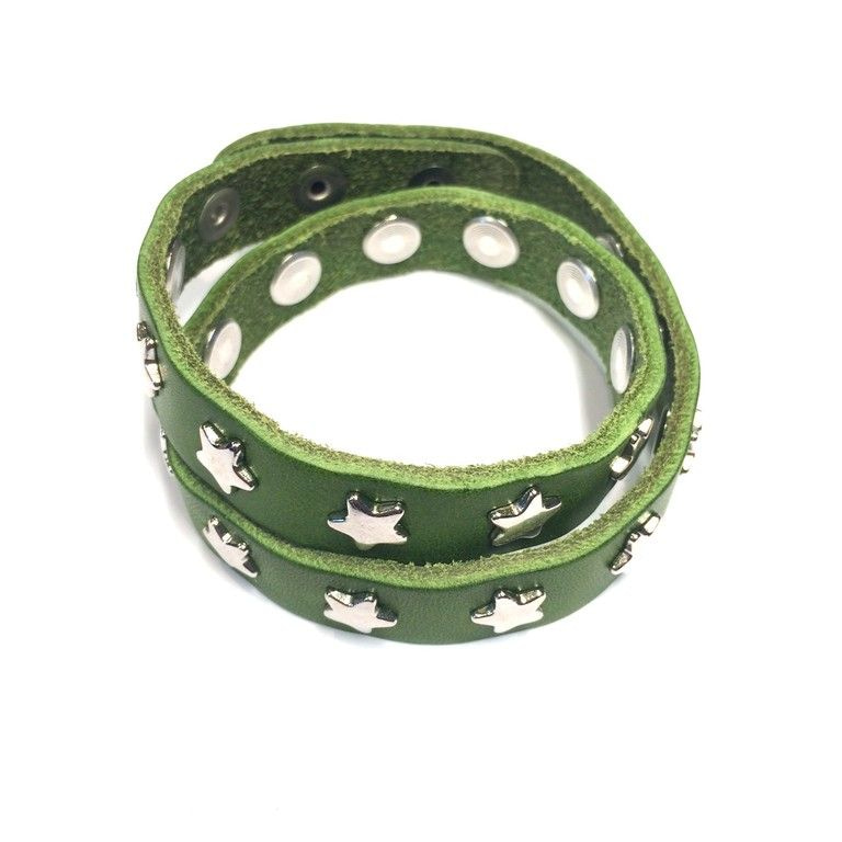 S_600479D - LEATHER BRACELET WITH STUDS STARS 2 DOUBLE GREEN (1st)