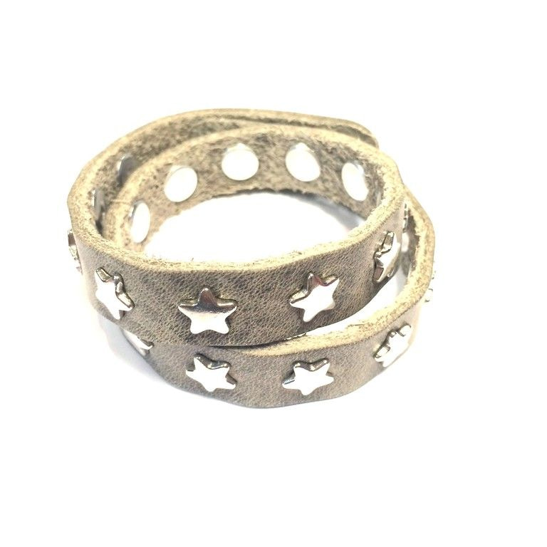 S_600479B - LEATHER BRACELET WITH STUDS STARS 2 DOUBLE GREY (1st)