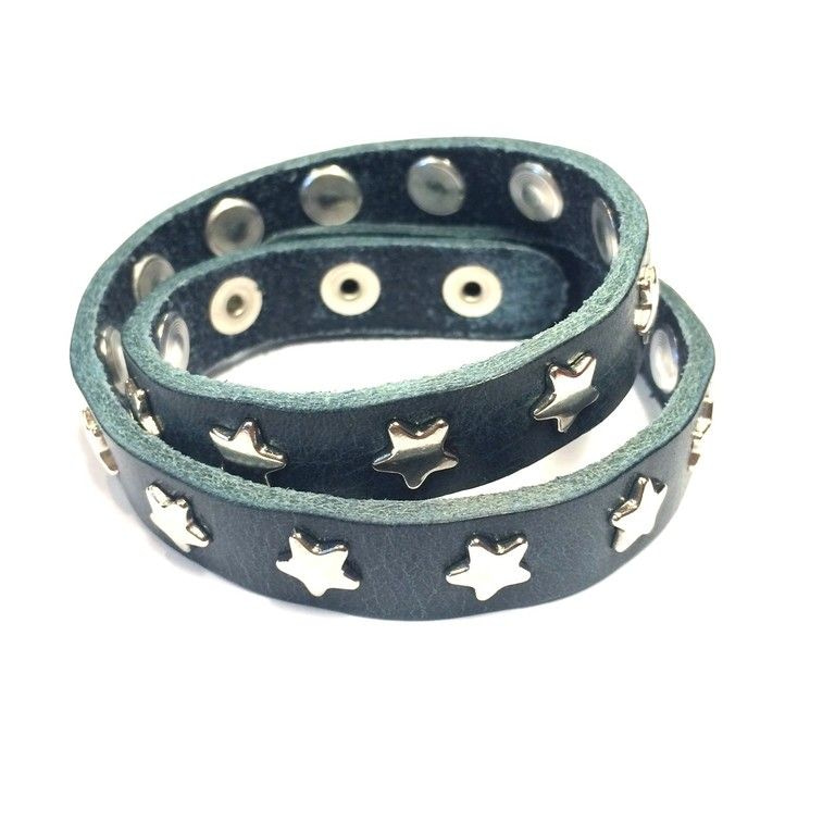 S_600479A - LEATHER BRACELET WITH STUDS STARS 2 DOUBLE BLUE (1st)