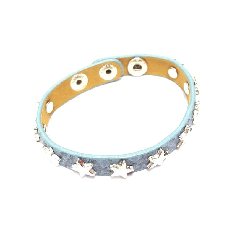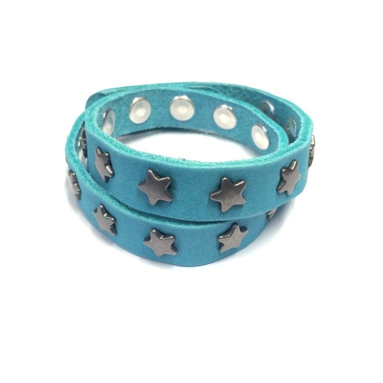 S_600479C - LEATHER BRACELET WITH STUDS STARS 2 DOUBLE AQUA BLUE (1st)