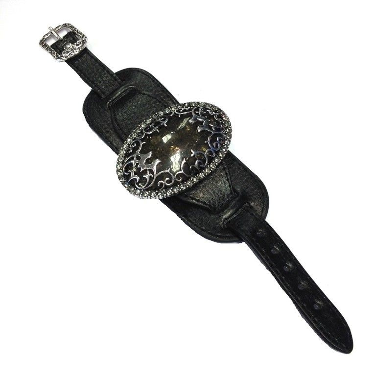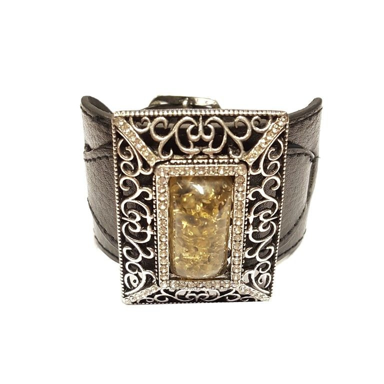 S_600423 - LUXURY BLACK LEATHER BRACELET WITH STONE (1st)