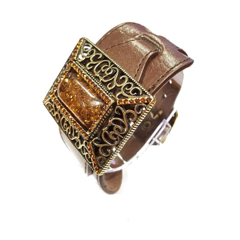 S_600423A - LUXURY BROWN LEATHER BRACELET WITH STONE (1st)