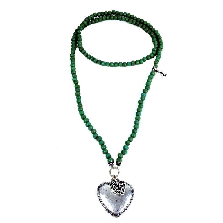 S_791027 - Art.nr: 791027 - NECKLACE LONG GREEN HEART (3pc)