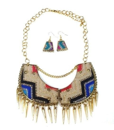 S_600143F - IBIZA LOOK NECKLACE AND EARRINGS GREY / BLUE / RED (1st)