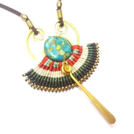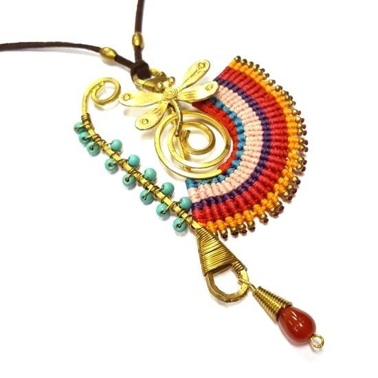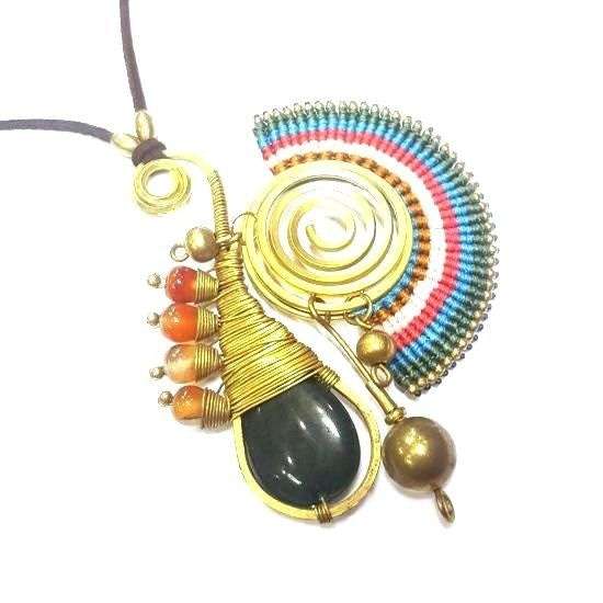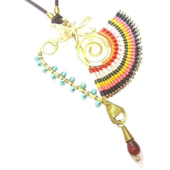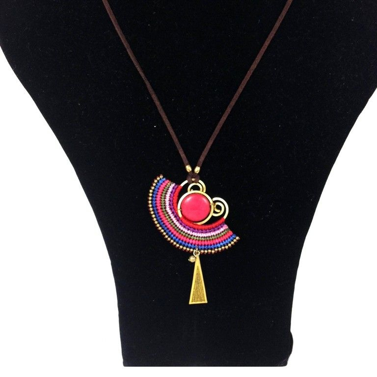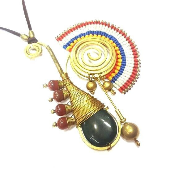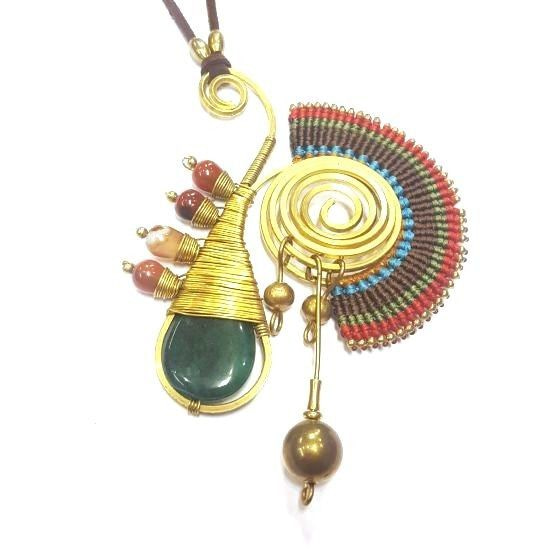S_600232G - IBIZA ORIGINALS HANDMADE NECKLACE WITH GREEN STONE RED / BROWN (1st)