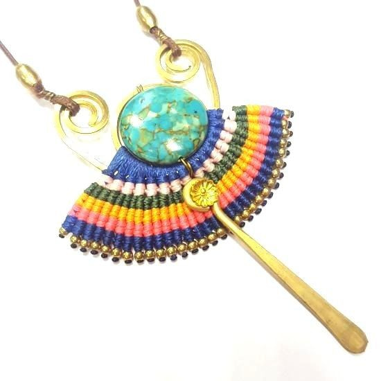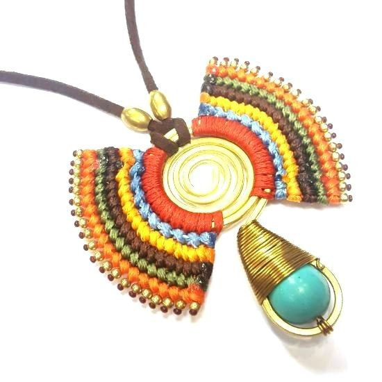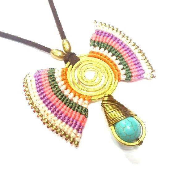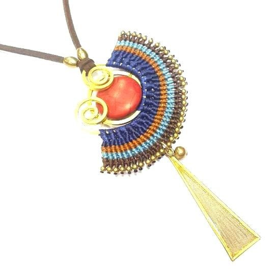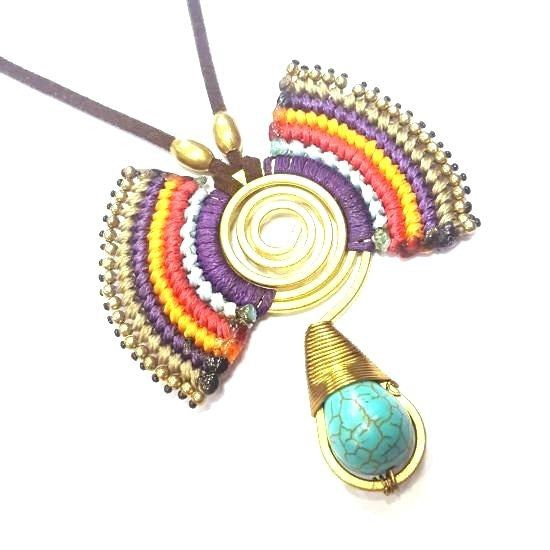 S_600225E - HANDMADE NECKLACE WITH BLUE STONE IBIZA ORIGINALS PURPLE / ORANGE (1st)