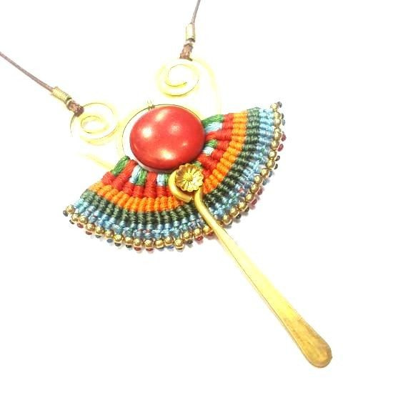 S_600232A - IBIZA ORIGINALS HANDMADE NECKLACE WITH GREEN STONE RED / ORANGE (1st)