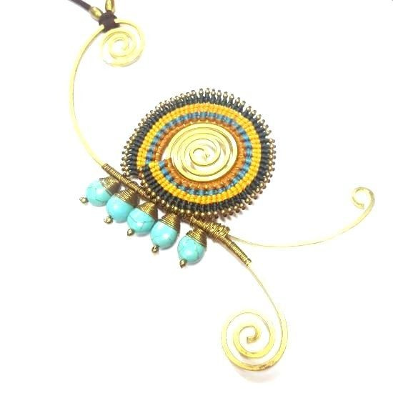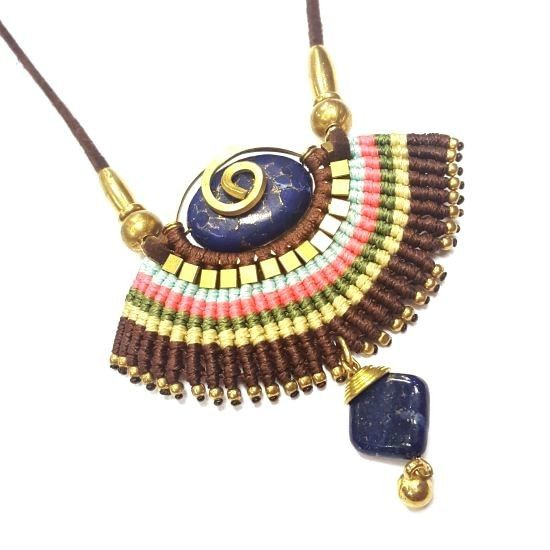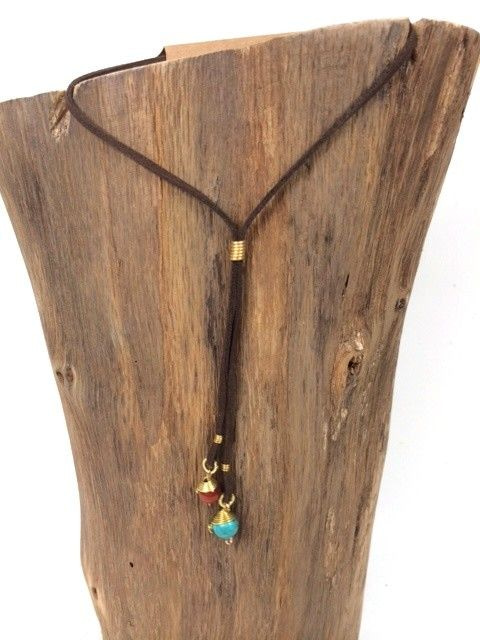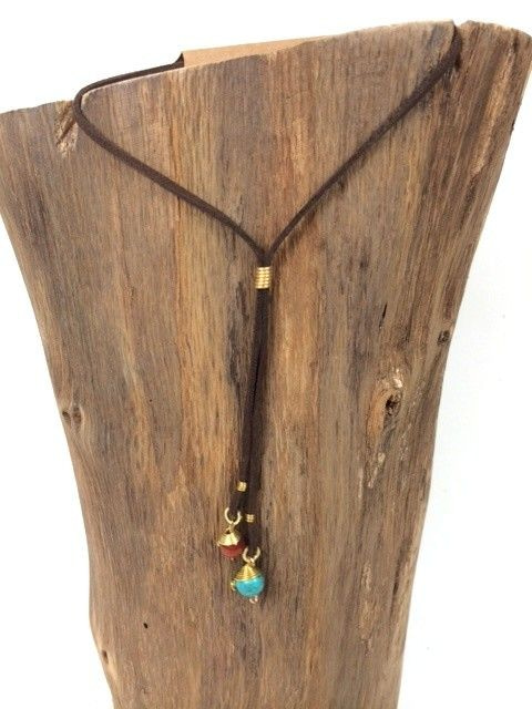 S_600207D - HANDMADE NECKLACE BLUE STONE IBIZA ORIGINALS COGNAC / ROOZE (1st)