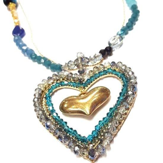 S_811244 - LUXURY NECKLACE BLUE / GREEN WITH HEART (1st)