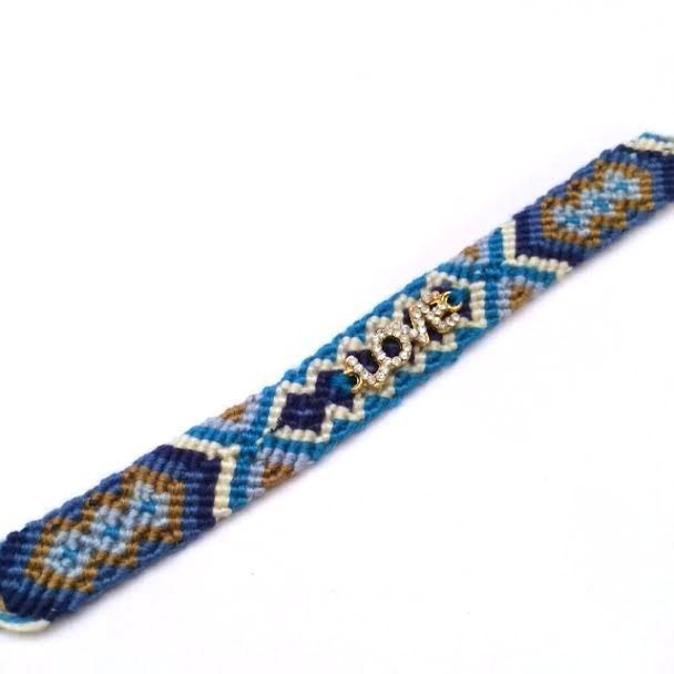 S_600044A - IBIZA LOOK BRACELET WITH BRAID BLUE RHINESTONE LOVE (1st)