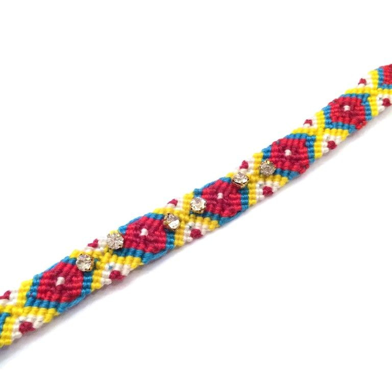 S_600044H - IBIZA LOOK BRAIDED BRACELET YELLOW / RED / BLUE WITH STRASS (1st)