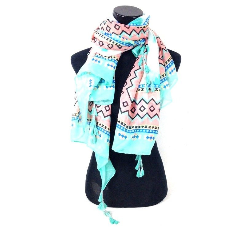 S_2373402 - LUXURY SCARF PRINT AZTEK mint green tassels (1st)