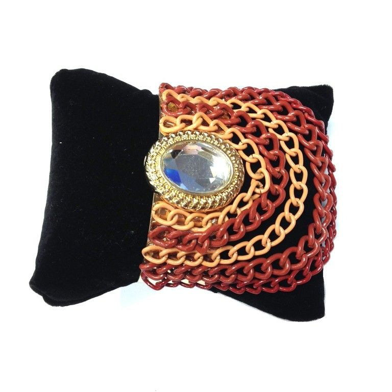 S_600422A - LUXE WIDE BRACELET GOLD / BROWN WITH CHAINS (1st)