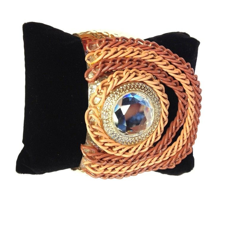S_600422 - LUXE WIDE BRACELET GOLD / BROWN WITH CHAINS (1st)